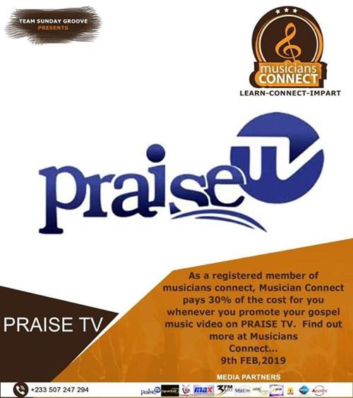 Musicians connect pays 30% of your promotion cost on some TV stations in Ghana and also offers a gospel musician one week free music video promotion on a TV network.